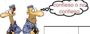 - ¿Será conveniente confesar? Desde el punto de vista individual lo mejor es inculpar al contrario, haga lo que haga éste. De esta manera obtenemos una mayor ventaja, aunque a un mayor riesgo. Pena máxima o absolución.